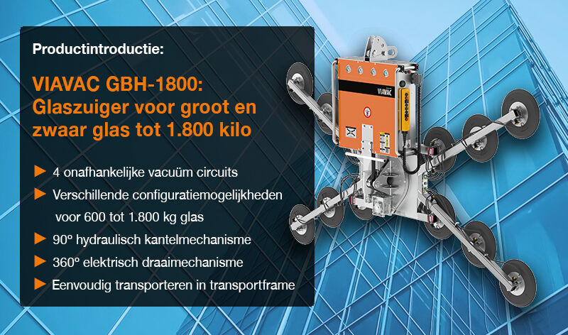 De VIAVAC GBH is uitgevoerd met een hydraulisch kantelmechanisme. Daarnaast zijn de draaibewegingen gemotoriseerd en kunnen glaselementen eenvoudig 360° gedraaid worden. Dankzij het quattro vacuümsysteem maakt u altijd optimaal gebruik van het maximale hijsvermogen. Deze glaszuiger wordt geleverd met een bekabelde en radiografische afstandsbediening voor het aanzuigen en lossen op afstand.